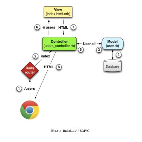 前提条件 - HTTPのGetリクエスト - Userモデルのデータを全部取得(User.all) - その内容をindex.html.erbに渡して表示させる。 ブラウザからURLのリクエスト(このリクエストは、アドレスバーにURLを入力したりリンクをクリックした時に発生する)をRails ro…
